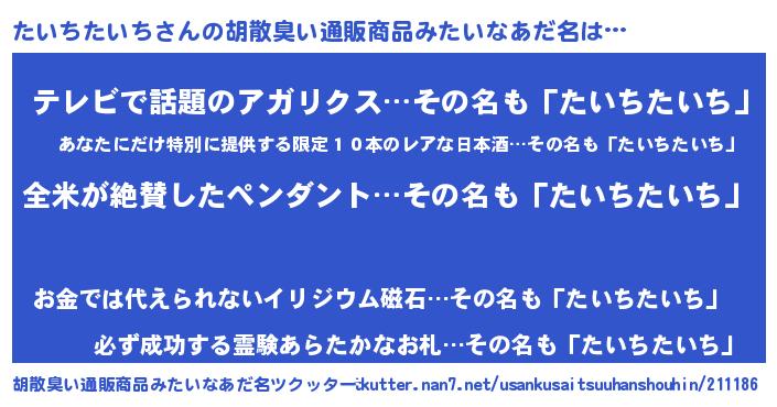 | 意味不明あだ名 | 『とにかく怪しいたいちたいち』 |