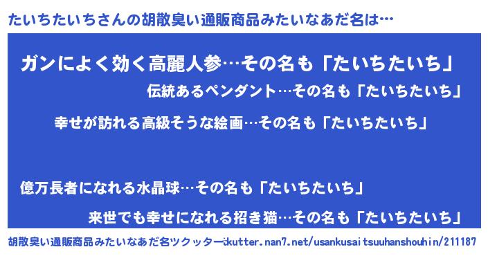 | 意味不明あだ名 | 『たいちたいちフォーエバー』 |
