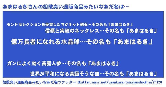 | 恥ずかしいあだ名 | 『プリティーあまはるき』『あまっちょ』 |