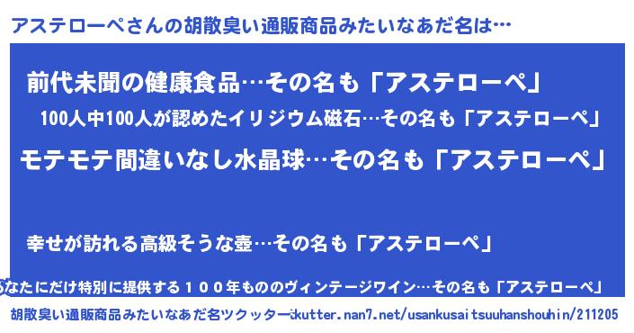 | 意味不明あだ名 | 『ペロリンアステローペ』 |