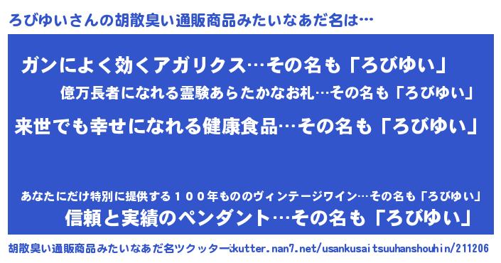 | ヘコむあだ名 | 『ろびゆい(爆)』『ろびっ子』 |