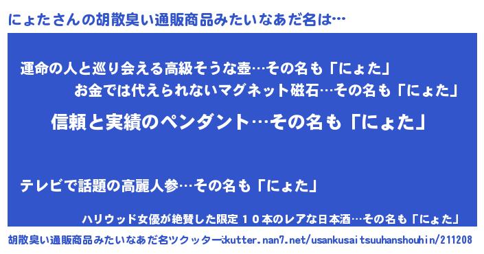 | 意味不明あだ名 | 『とにかく怪しいにょた』 |