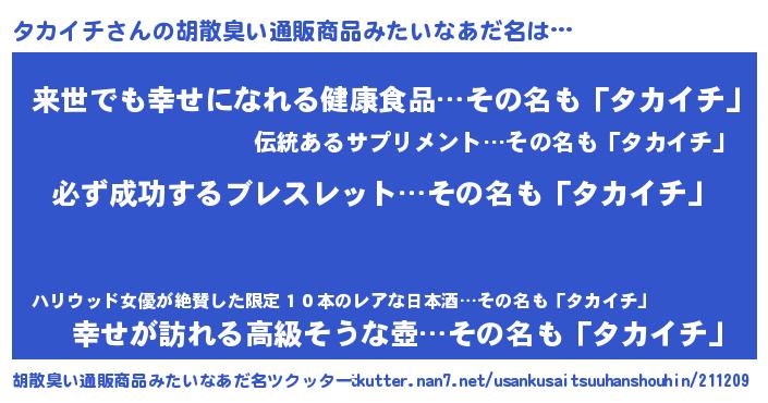 | 意味不明あだ名 | 『ペロリンタカイチ』『永久保存タカイチ』 |