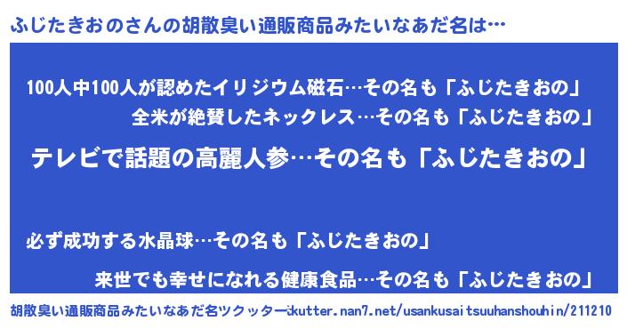 | 意味不明あだ名 | 『自称ふじたきおの』 |