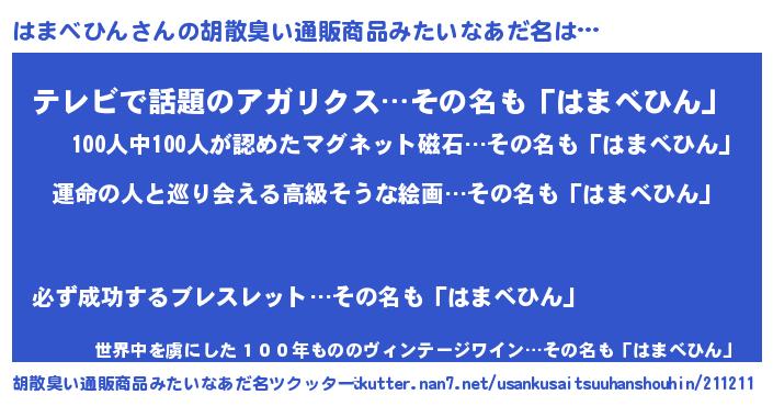 | ヒーロー風カッコイイあだ名 | 『ウルトラはまべひんマン』 |