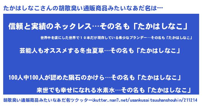 | 意味不明あだ名 | 『自称たかはしなこ』 |