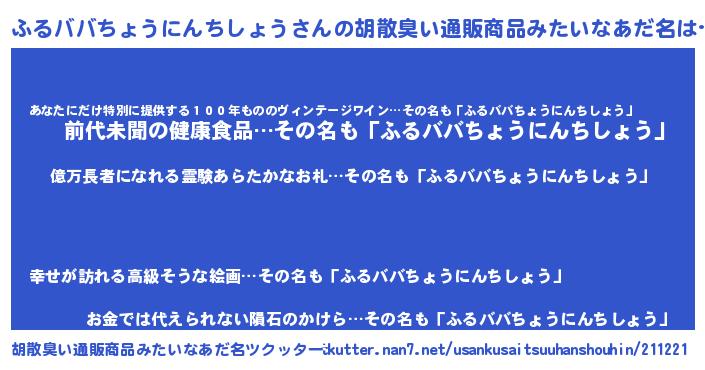 | ヒーロー風カッコイイあだ名 | 『スーパーフルババチョウニンチショウ』 |