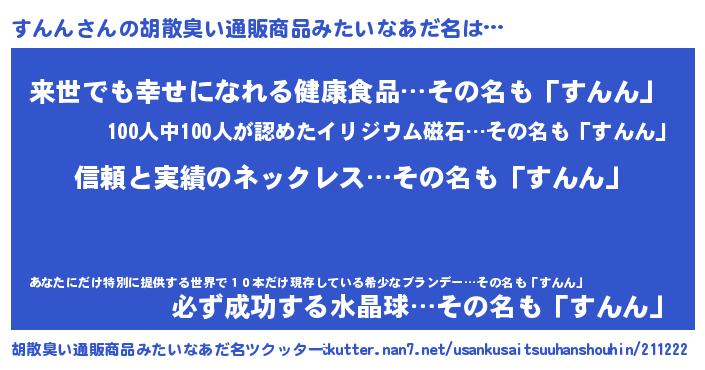 | 意味不明あだ名 | 『とにかく怪しいすんん』 |