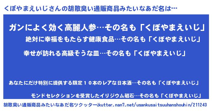 | 意味不明あだ名 | 『くぼやまえいじフォーエバー』 |