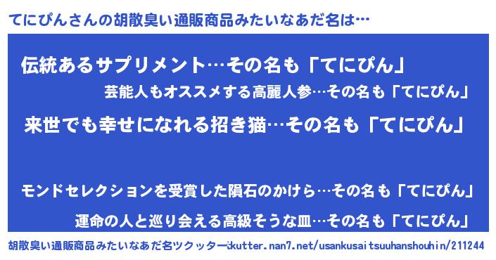 | ヘコむあだ名 | 『てにぴん(笑)』『てにぷりん』 |
