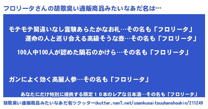 | 男性向けラノベタイトル風あだ名 | 『緋弾のフロリータ』 |