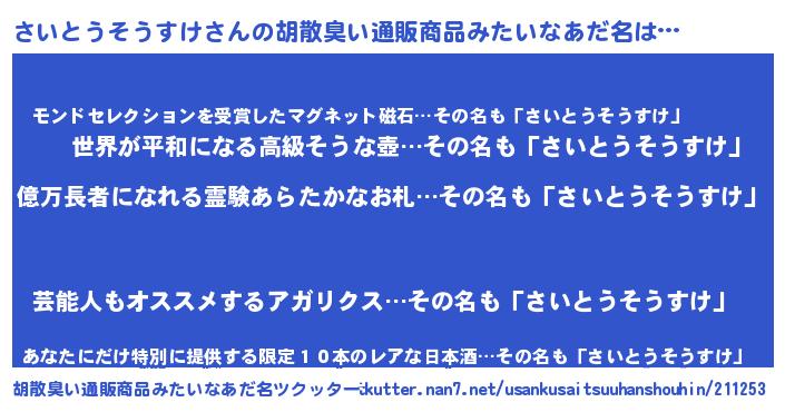 | 肩書あだ名 | 『さいとうそうすけ御曹司』 |