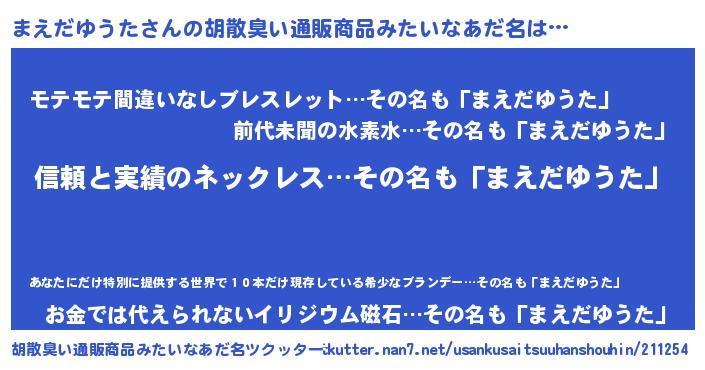 | 男性向けラノベタイトル風あだ名 | 『緋弾のマエダユウタ』 |