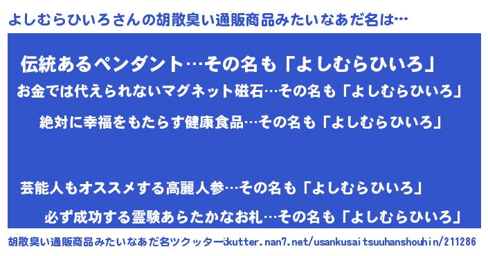 | ポケモン風あだ名 | 『ゼニヨシ』『ヒヨシムラヒイロ』 |