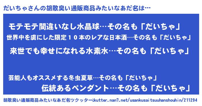 | ヘコむあだ名 | 『だいちゃ(遠い目)』『だいにゅー』 |