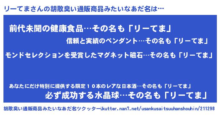 | ヘコむあだ名 | 『リーてま(小並感)』『リーにゅー』 |
