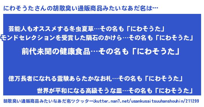 | 意味不明あだ名 | 『永久保存にわそうた』『自称にわそうた』 |