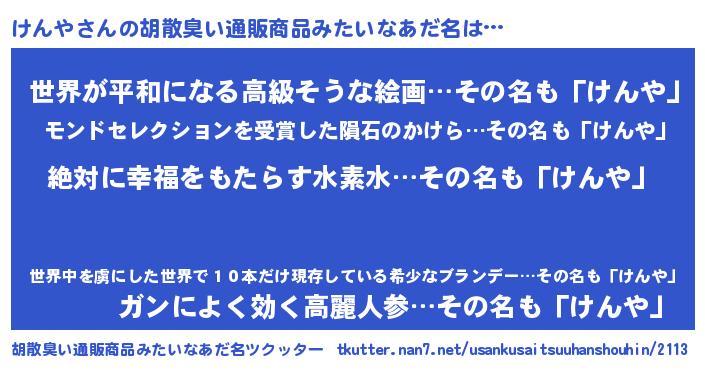 | ヘコむあだ名 | 『けんや(震え声)』『なまこ酢』 |