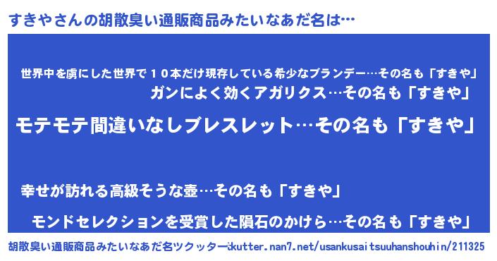 すきやさんの胡散臭い通販商品みたいなあだ名をツクッター!