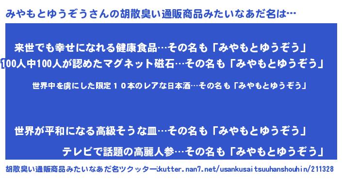 | 意味不明あだ名 | 『住所不定無職みやもとゆうぞう(43歳)』 |