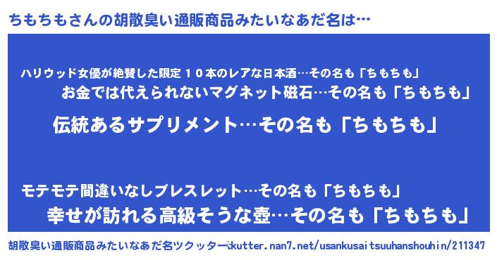 | 意味不明あだ名 | 『とにかく怪しいちもちも』 |