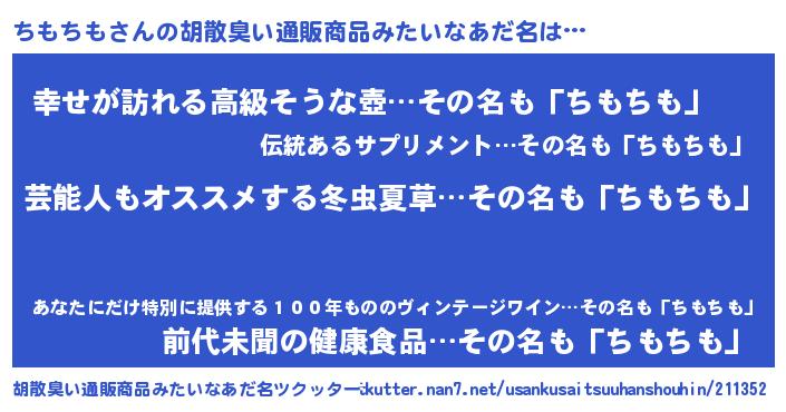 | 意味不明あだ名 | 『自称ちもちも』『ちもちもフォーエバー』 |