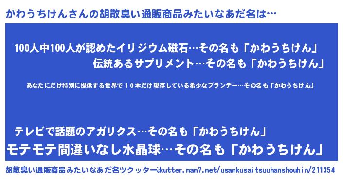 | 意味不明あだ名 | 『住所不定無職かわうちけん(71歳)』 |