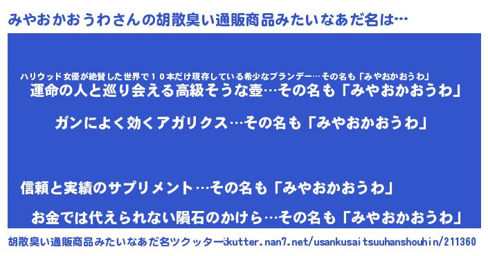 | 意味不明あだ名 | 『自称みやおかおうわ』 |