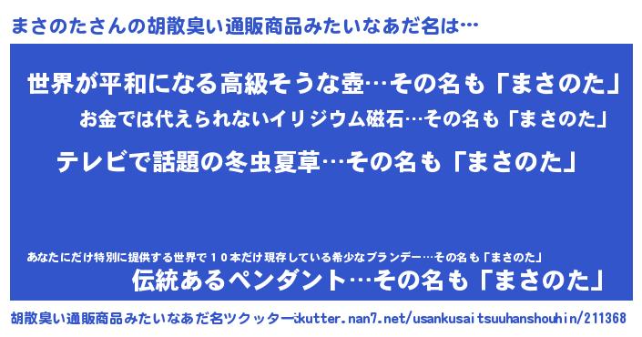 | ヒーロー風カッコイイあだ名 | 『サイバー戦士マサノタ』『暗黒騎士マサ』 |