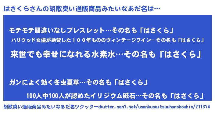 | 意味不明あだ名 | 『永久保存はさくら』『ペロリンはさくら』 |