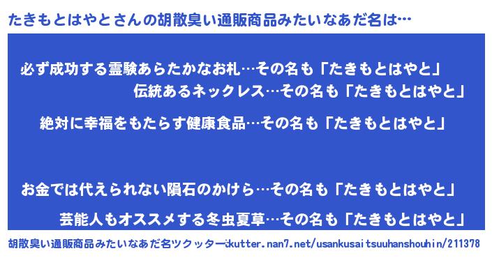 | 肩書あだ名 | 『たきもとはやと少将』 |