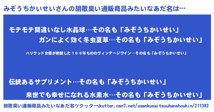 | 意味不明あだ名 | 『住所不定無職みぞうちかいせい(10歳)』 |