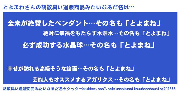 | ヘコむあだ名 | 『とよにゅー』『とよぷりん』 |
