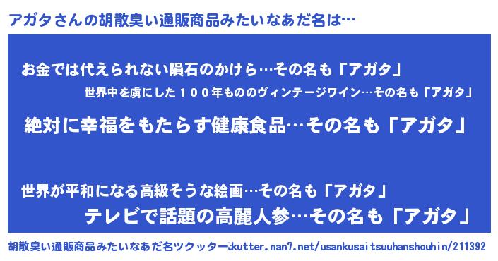 | 意味不明あだ名 | 『永久保存アガタ』『自称アガタ』 |