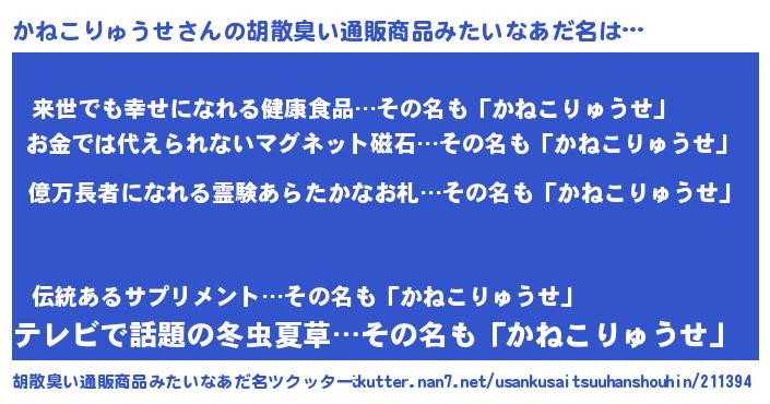 | ヒーロー風カッコイイあだ名 | 『スーパーカネコリュウセ』 |