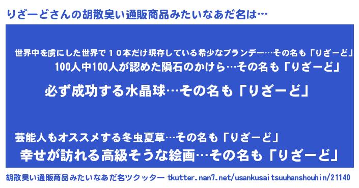 | ヘコむあだ名 | 『りざふぇ~』『豆乳』『りざ太郎』 |