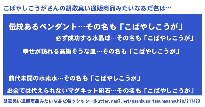 | 伝説のあだ名 | 『秘められし陰陽師こばやしこうが』 |