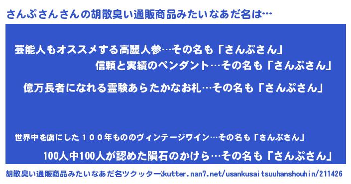 | 肩書あだ名 | 『さんぷさん上級大将』『さんぷさんCEO』 |