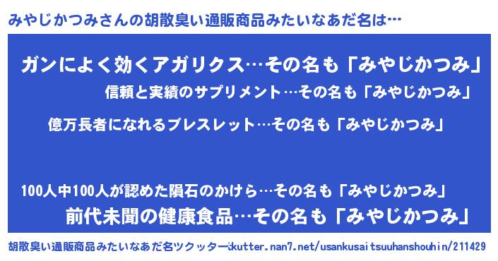 | 欧米人風あだ名 | 『マイケルみやじかつみ』 |