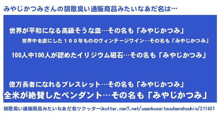 | ピコ太郎風あだ名 | 『ミミ太郎』『ピミ十郎』『ミヤ八郎』 |