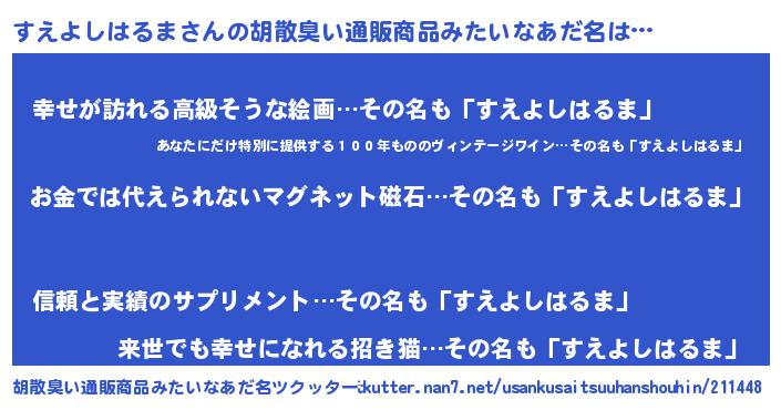 | ヘコむあだ名 | 『なまこ酢』『すえよしはるま(苦笑)』 |