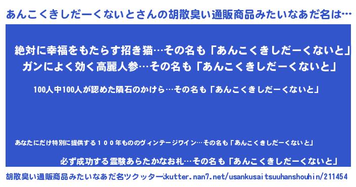 あんこくきしだーくないとさんの胡散臭い通販商品みたいなあだ名をツクッター!
