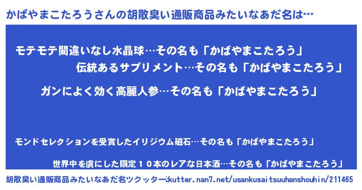 | 意味不明あだ名 | 『自称かばやまこたろう』 |