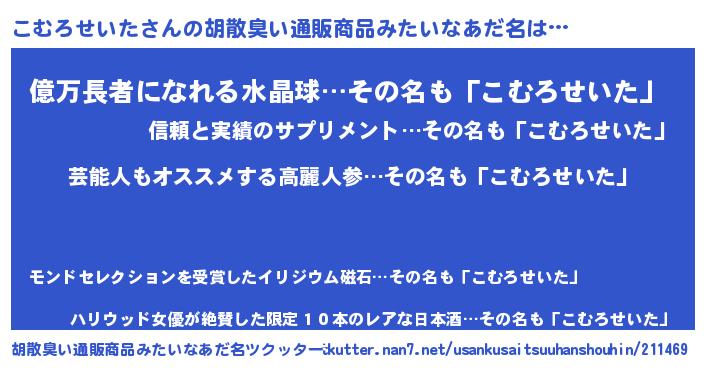 | 意味不明あだ名 | 『自称こむろせいた』 |