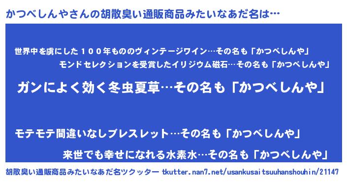 | 意味不明あだ名 | 『自称かつべしんや』 |