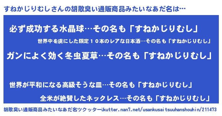 | 男性向けラノベタイトル風あだ名 | 『スネカジリムシスレイヤー』 |