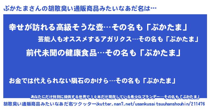| 意味不明あだ名 | 『永久保存ぷかたま』『自称ぷかたま』 |