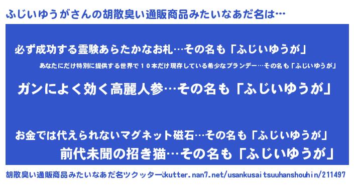 | 恥ずかしいあだ名 | 『フジイユウガデラックス』『ふじちん』 |