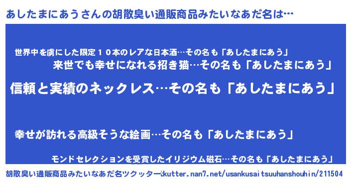 | 欧米人風あだ名 | 『ウサインあしたまにあう』 |