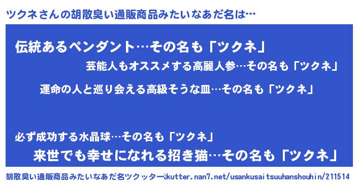 | 意味不明あだ名 | 『ツクネフォーエバー』『永久保存ツクネ』 |